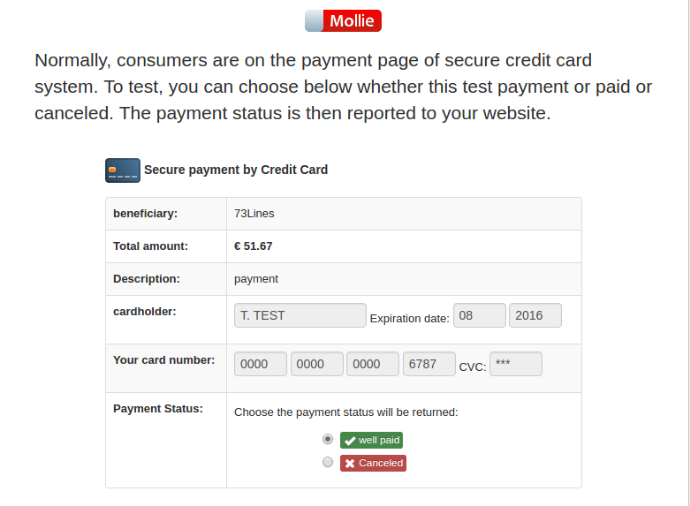 After clicking on Pay Now, you will be redirected to Mollie payment page. Enter the details to make the payment